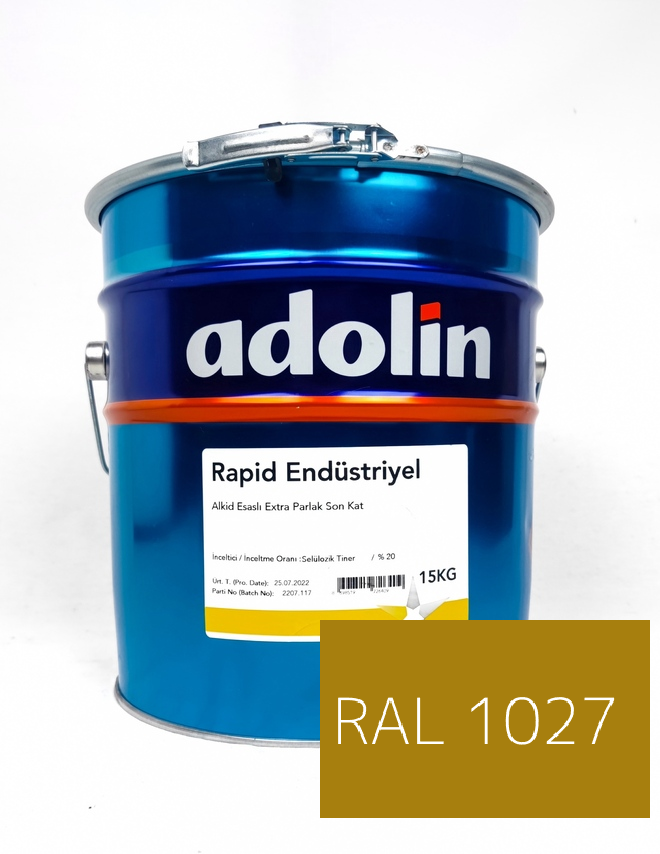RAL 1027 Köri Sarısı, egzotik köri baharatının yoğun ve sıcak sarı-turuncu tonundan ilham alan, derin ve karakterli bir renktir. Bu kültür köklü ve sıcak renk, Doğu'nun zengin baharat kültürünü ve canlı pazar atmosferini çağrıştırarak hem geleneksel hem de modern mekânlarda özgün bir etki yaratmaktadır. RAL 1027 kodu, sıcak ve egzotik bir atmosfer yaratmak isteyen projelerin favorisi olmaktadır. Bulyak Adolin Bayi olarak RAL 1027 Köri Sarısı rengini endüstriyel boya, akrilik boya, yol çizgisi boyası, zemin boyası ve epoksi boya formülasyonlarında üretmekteyiz. Endüstriyel boya olarak RAL 1027, gıda işleme ekipmanları, baharatçılık makineleri ve organik ürün paketleme tesislerinde uygulanır. Gıda güvenliğine uygun pigment seçimleriyle hazırlanan bu formülasyon endüstriyel gıda tesislerinde güvenle kullanılabilmektedir. Akrilik boya formülasyonunda RAL 1027 Köri Sarısı, Hint ve Orta Doğu mutfağı restoranlarında, baharat çarşılarında ve etnik pazarlarda otantik ve iştah açıcı bir atmosfer yaratır. İç mekân uygulamalarında bu sıcak ton, müşteri memnuniyetini artıran nostaljik bir ortam oluşturur. Zemin boyası olarak bu ton, gıda satış alanlarında, açık hava çarşılarında ve pazar alanlarının zemin işaretlemesinde kullanılır. Yol çizgisi boyası olarak RAL 1027, turizm destinasyonlarındaki yönlendirme işaretlemelerinde ve çarşı bölgelerinin yaya akışını düzenleyen şeritlerinde kullanılır. Epoksi boya formülasyonunda ise gıda depolama tesislerinde ve lojistik merkezlerin zemin kaplamasında tercih edilmektedir. Sektörel kullanım alanları bakımından RAL 1027 Köri Sarısı; gıda endüstrisi, etnik yiyecek-içecek sektörü, turizm tesisleri, tekstil fabrikaları ve geleneksel el sanatları merkezleri öne çıkar. Bulyak Adolin Bayi'nin RAL 1027 formülasyonları tam renk doygunluğu ve yüksek örtücülüğüyle sunulmaktadır.